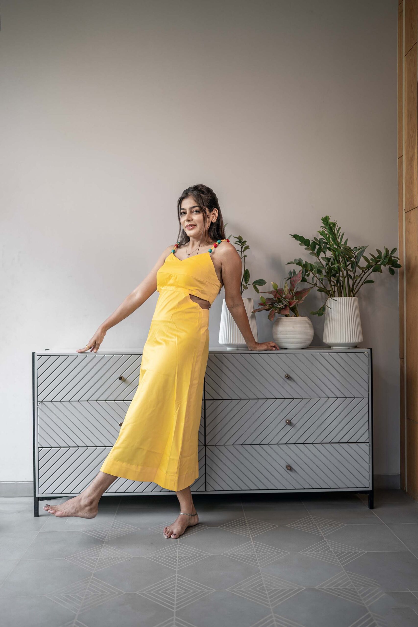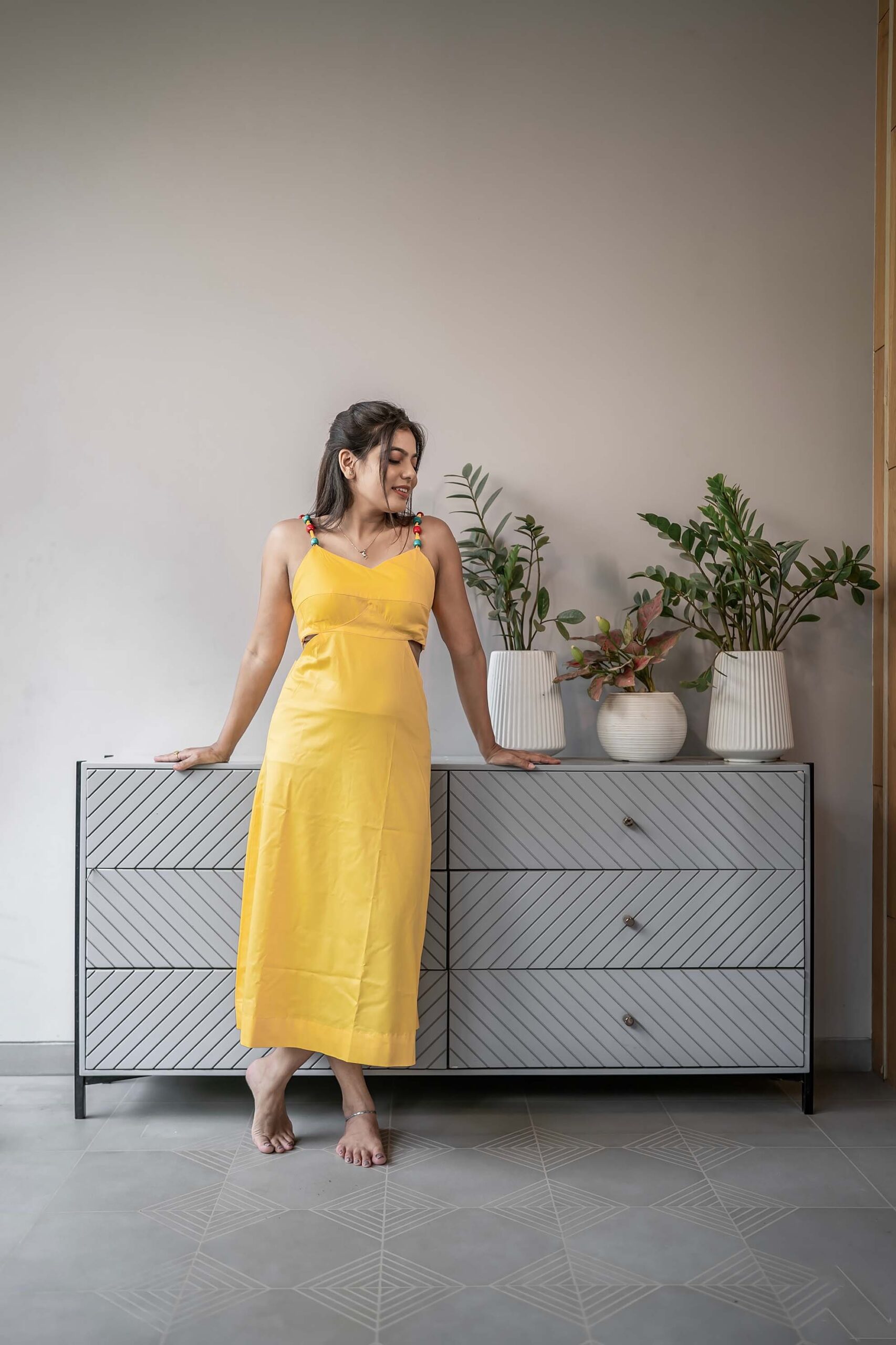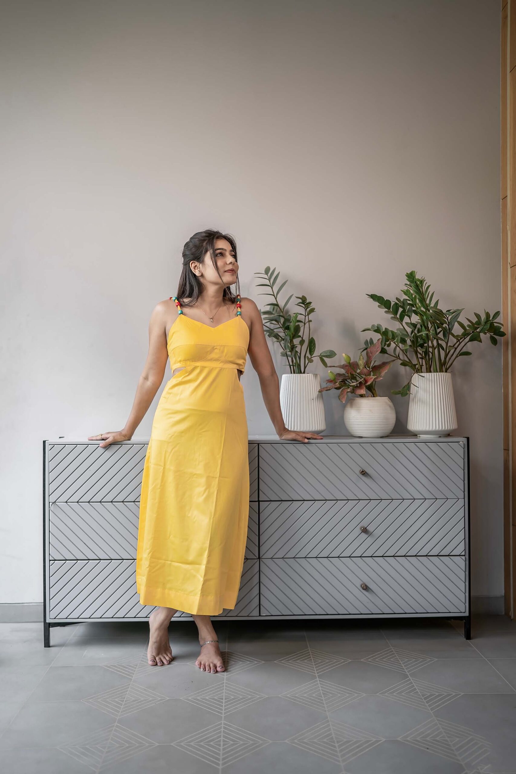 yellow one piece spaghetti racism cotton beaded straps quantity